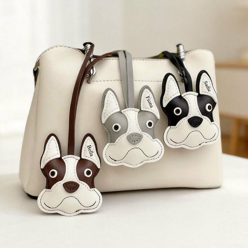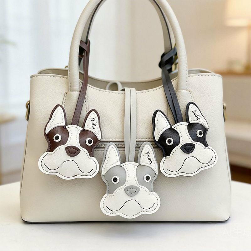 Personalized PU Leather Bag Charm Ornament French Bulldog Design Cute Gift for Pet Lovers
