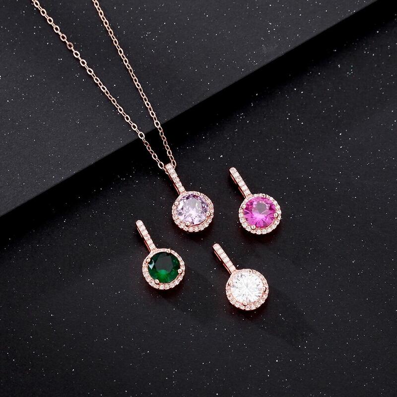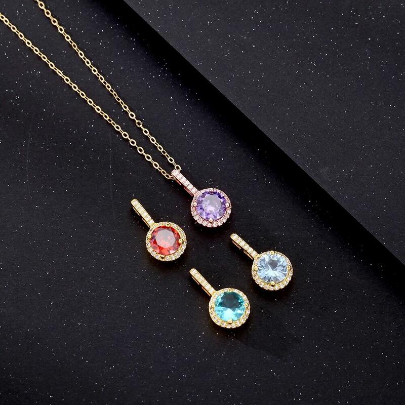 Personalized Round Birthstone Necklace Gift for Birthday