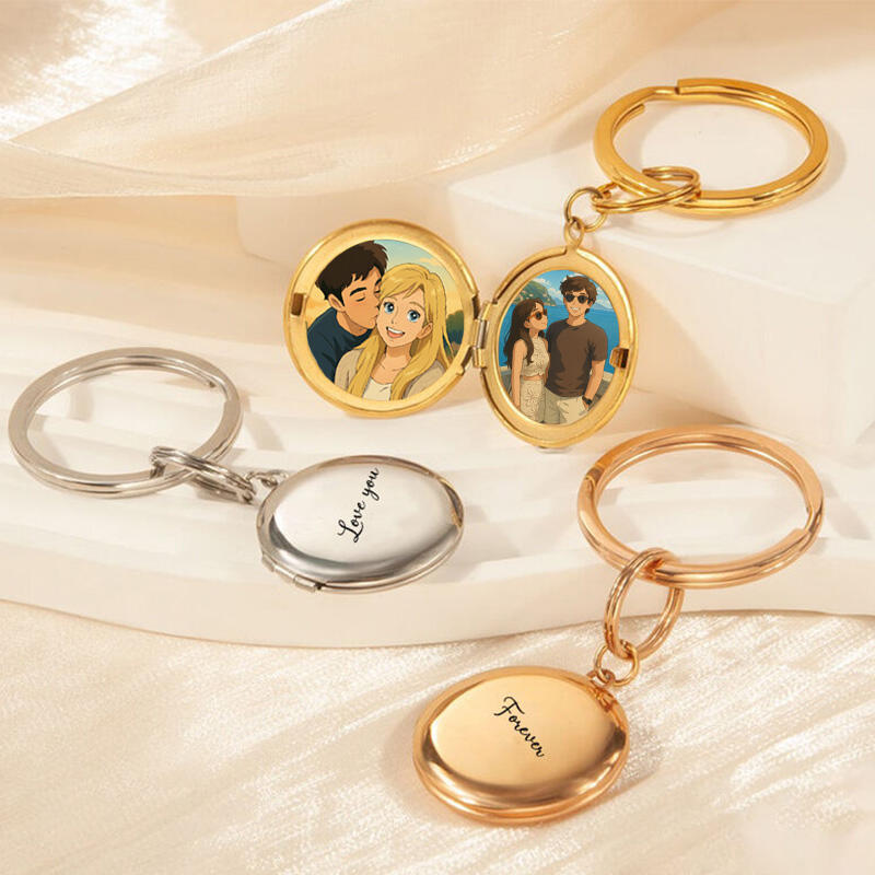 Personalized Round Cartoon Style Keychain Exquisite Gift for Wife