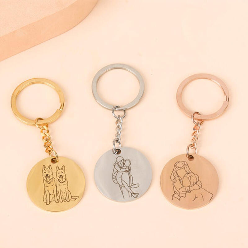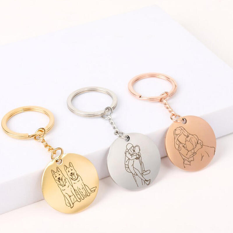 Personalized round line photo keychain for pet lovers