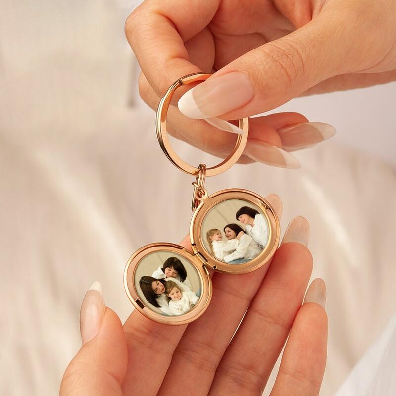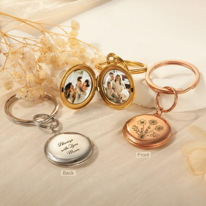 Personalized Round Photo Keychain Customized Birthday Flower Christmas Gift For Mother
