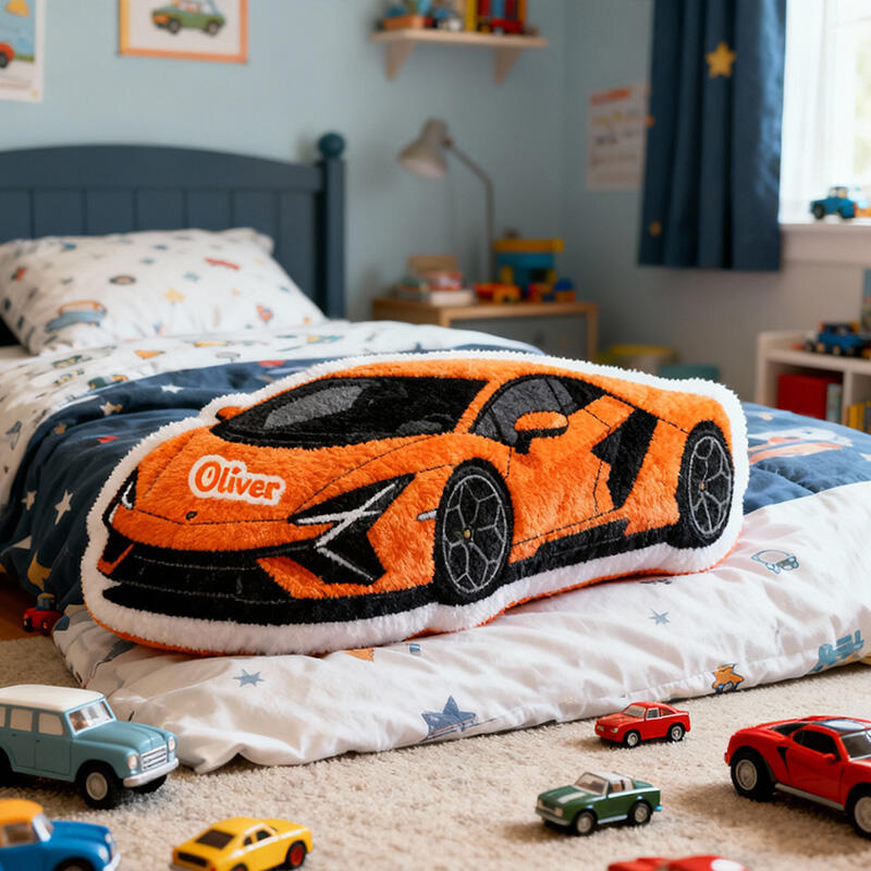 Personalized Sports Car-Shaped Pillow Customizable with Your Name Cool Gift for Boys
