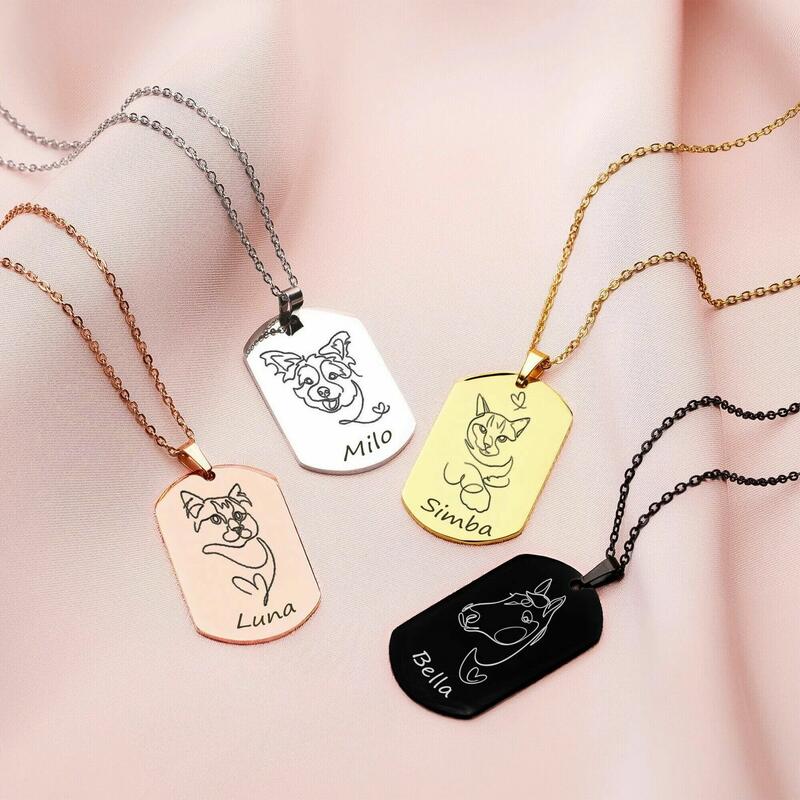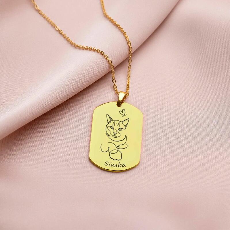 Personalized Square Photo Necklace With Name Gift For Pet Lovers