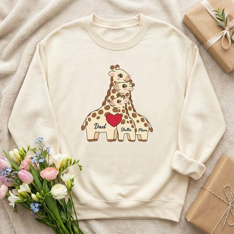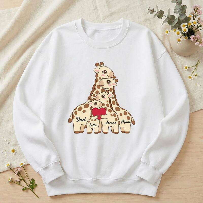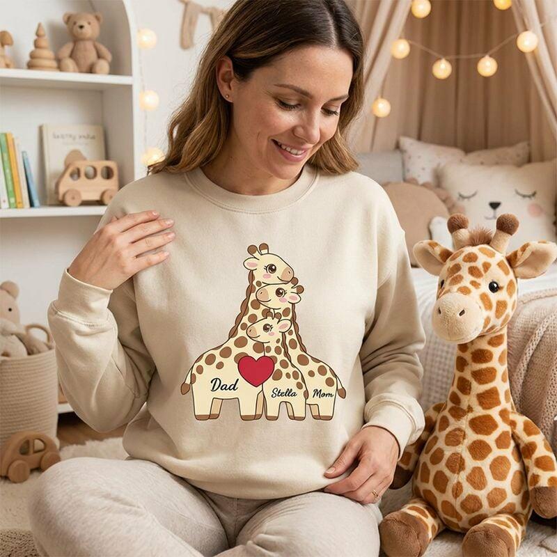 Personalized Sweatshirt Custom Names Cute Giraffe Family Color Design Adorable Gift for Mother's Day