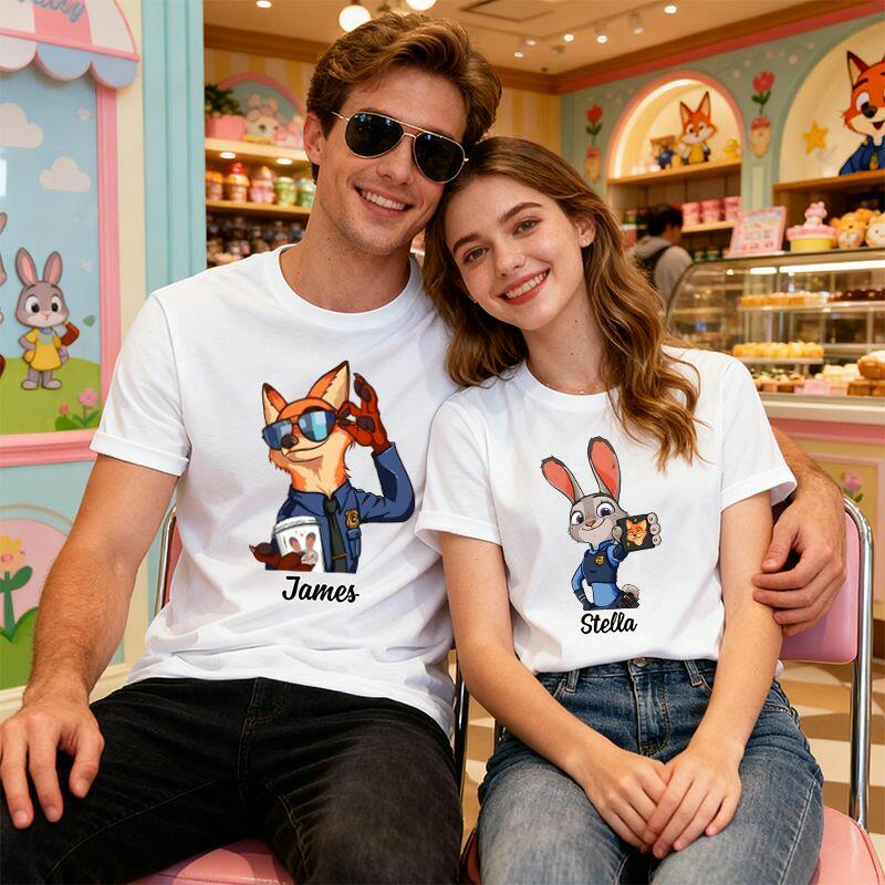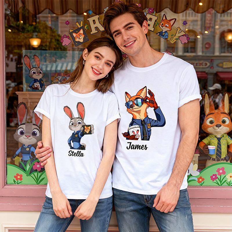 Personalized T-shirt Cute Rabbit and Fox Officers Perfect Valentine's Day Gift for Couples