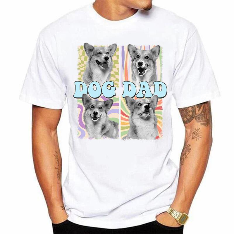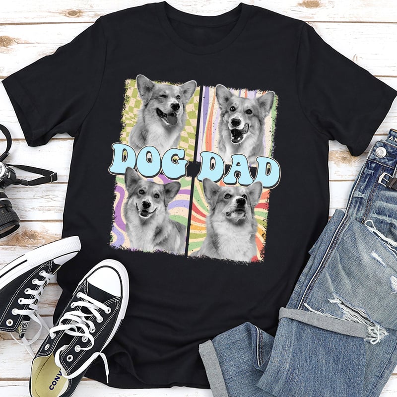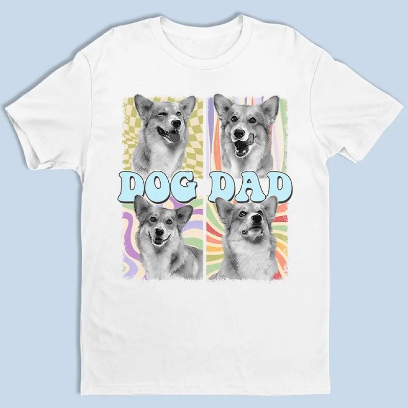 Personalized T-shirt Pet Dad Colorful Lattice Photo Design Attractive Gift for Pet Lovers