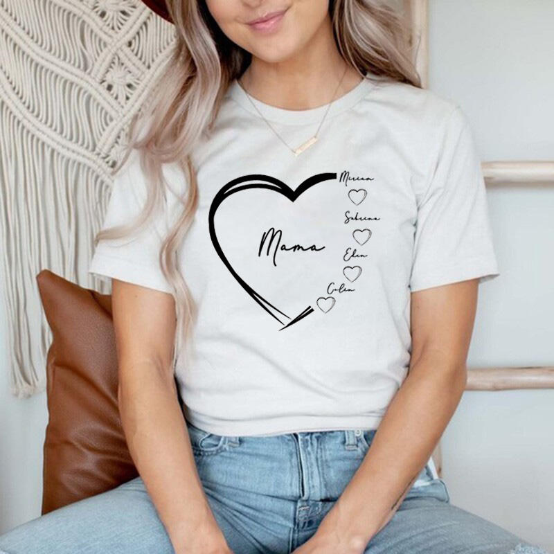 Personalized T-shirt with Hearts of Custom Name for Best Mom