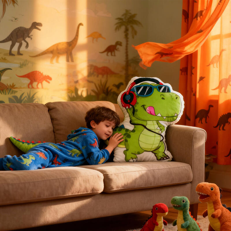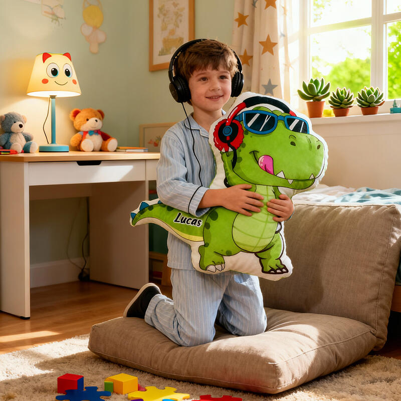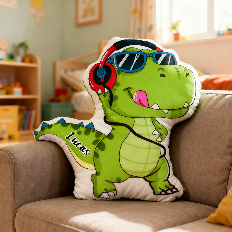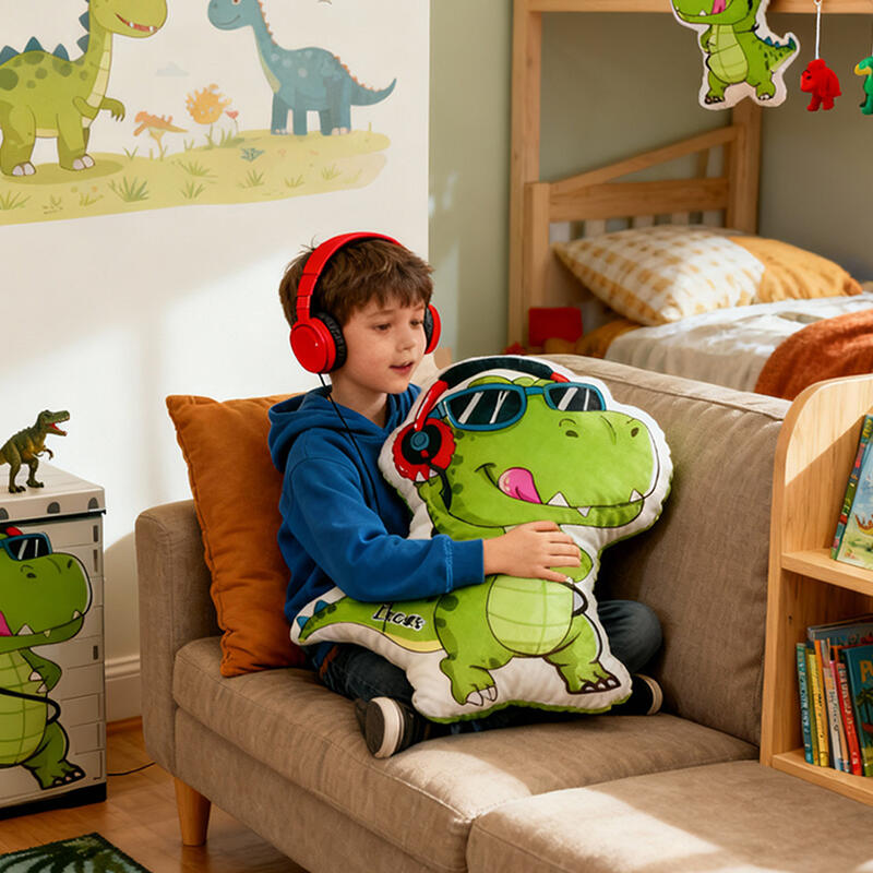 Personalized Throw Pillow Cute Dinosaur Theme Headphone Print Throw Pillow for Music Lovers