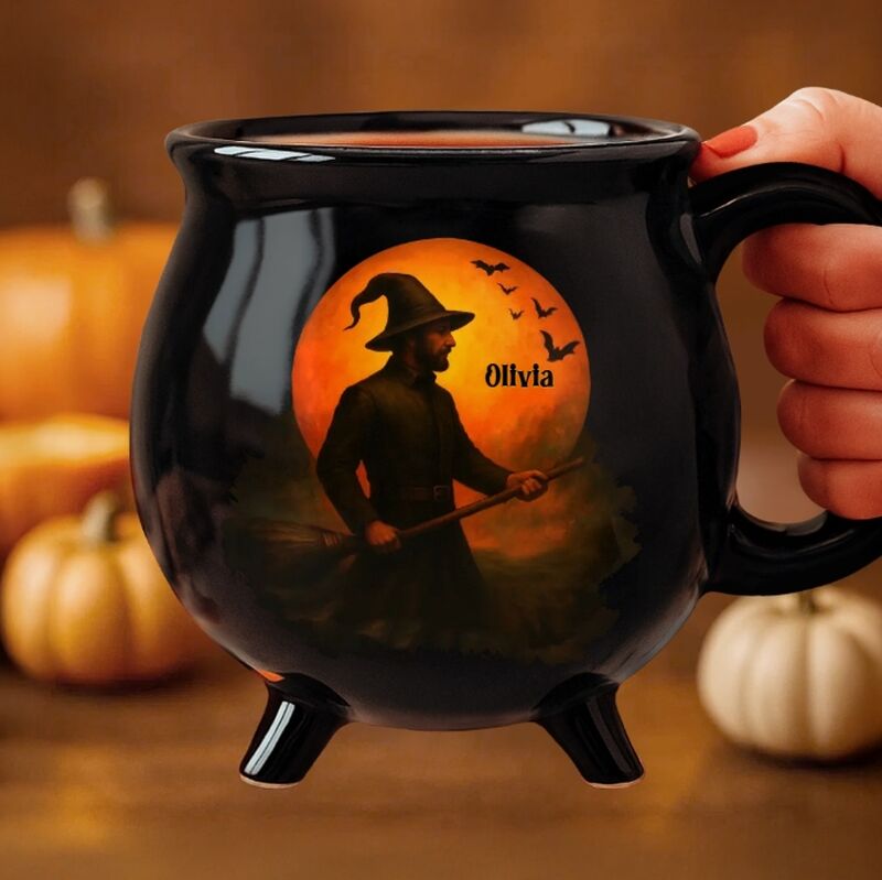 Personalized Witch Cauldron Coffee Mug with Name Fun Gift for Halloween