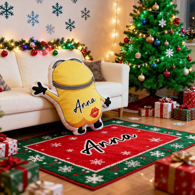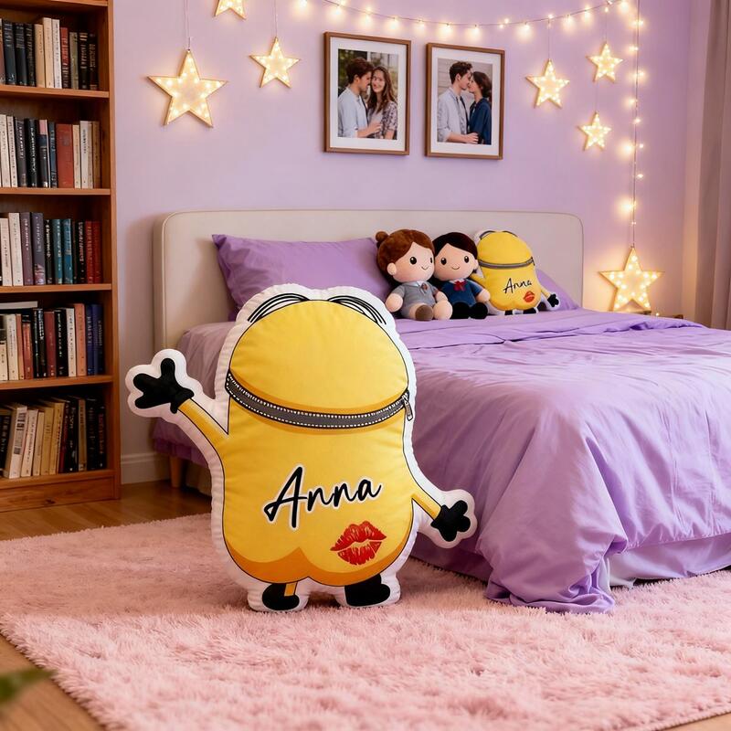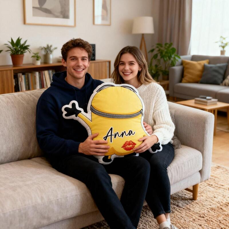 Personalized Yellow Throw Pillow Cartoon Fun Cushion Valentine's Day Gift for Couples