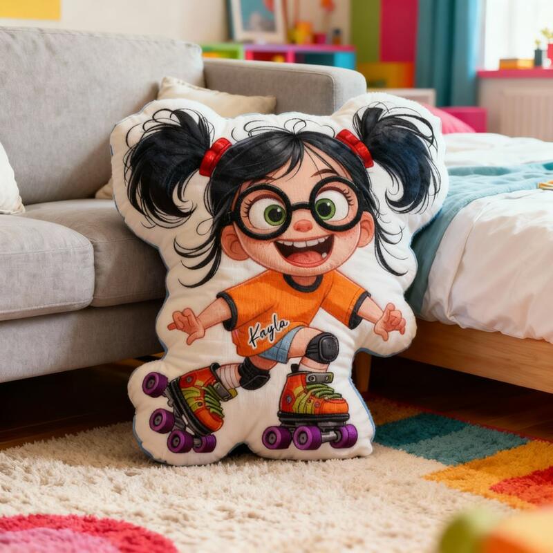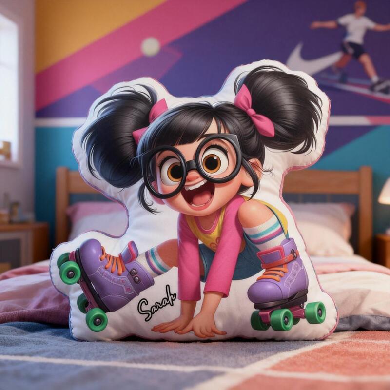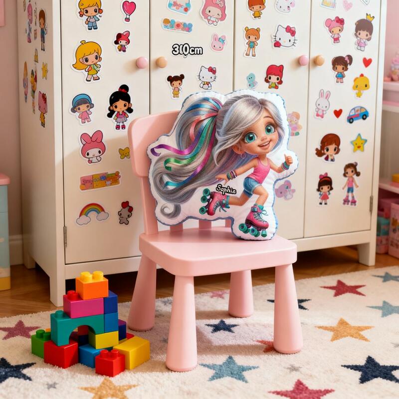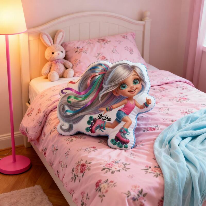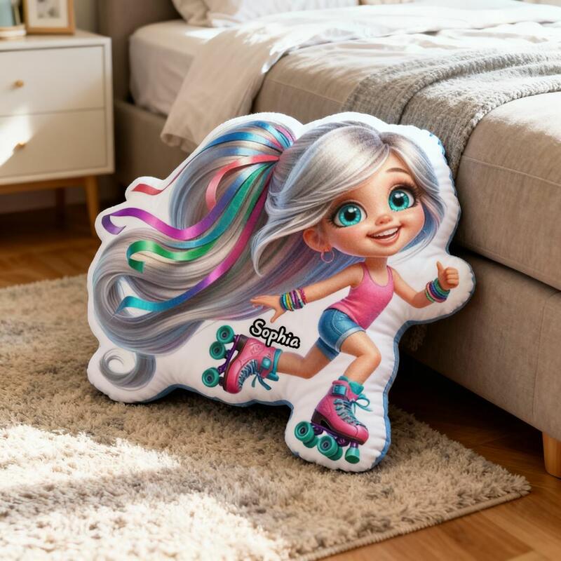 "Roller Skating Girl" Personalized Cartoon Fabric Pillow Soft Cushion Birthday Gift for Daughter