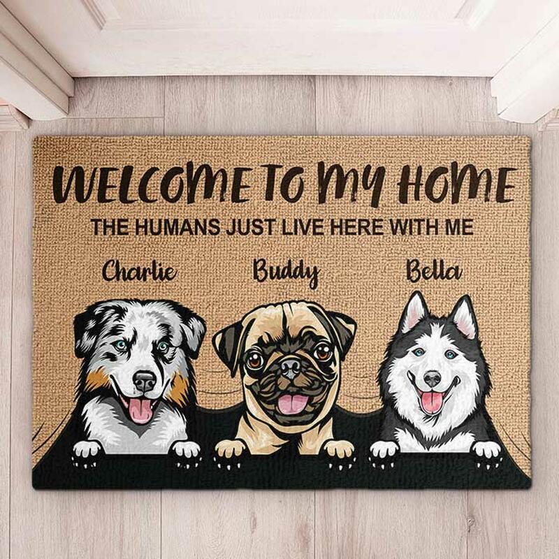 Welcome to Our Home Personalized Floor Mat with Pet Image and Name Gift